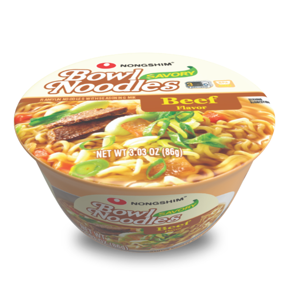 Descubra o autêntico sabor americano com o Macarrão Instantâneo Nongshim Savory Beef Bowl Noodles.